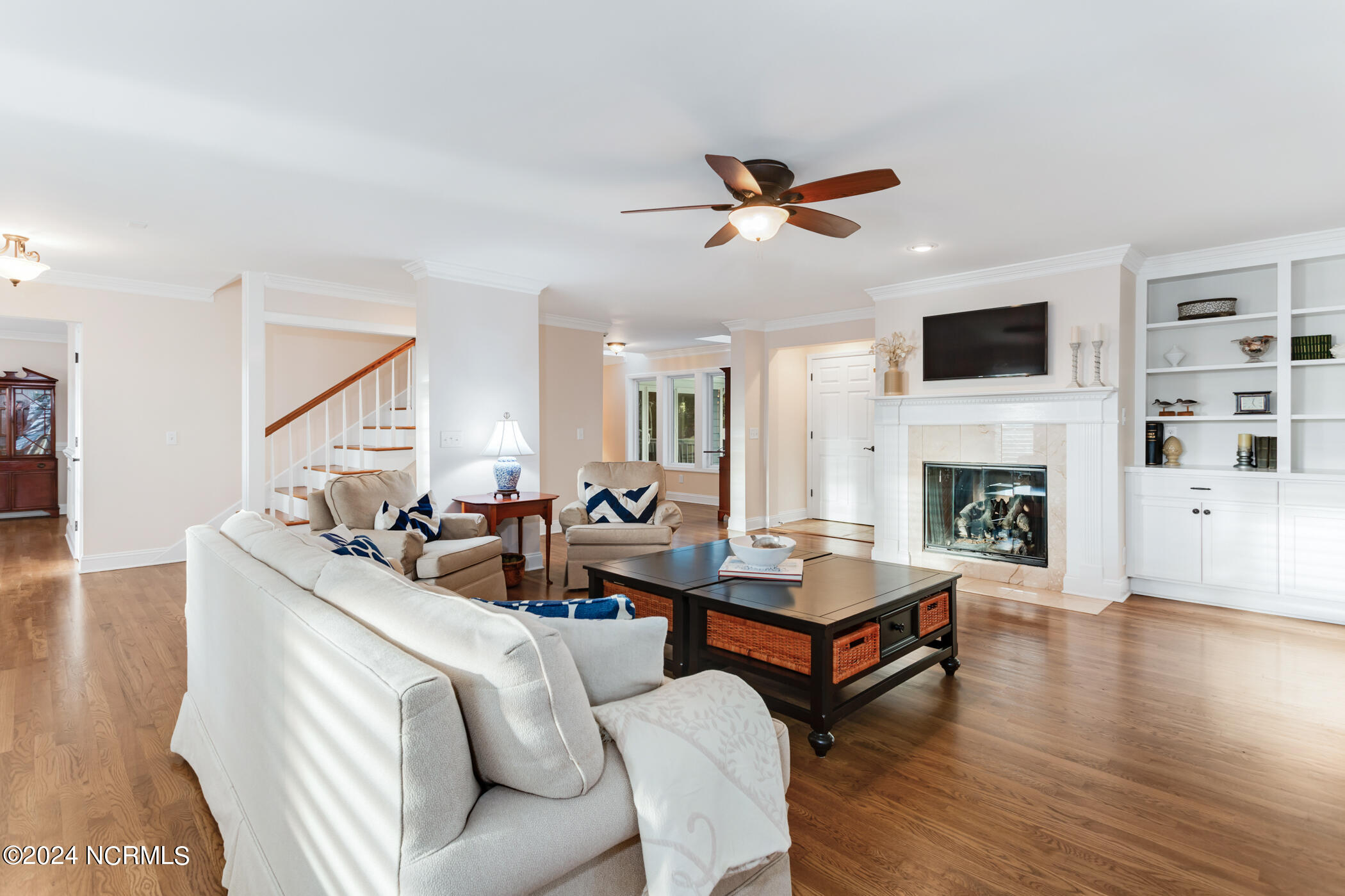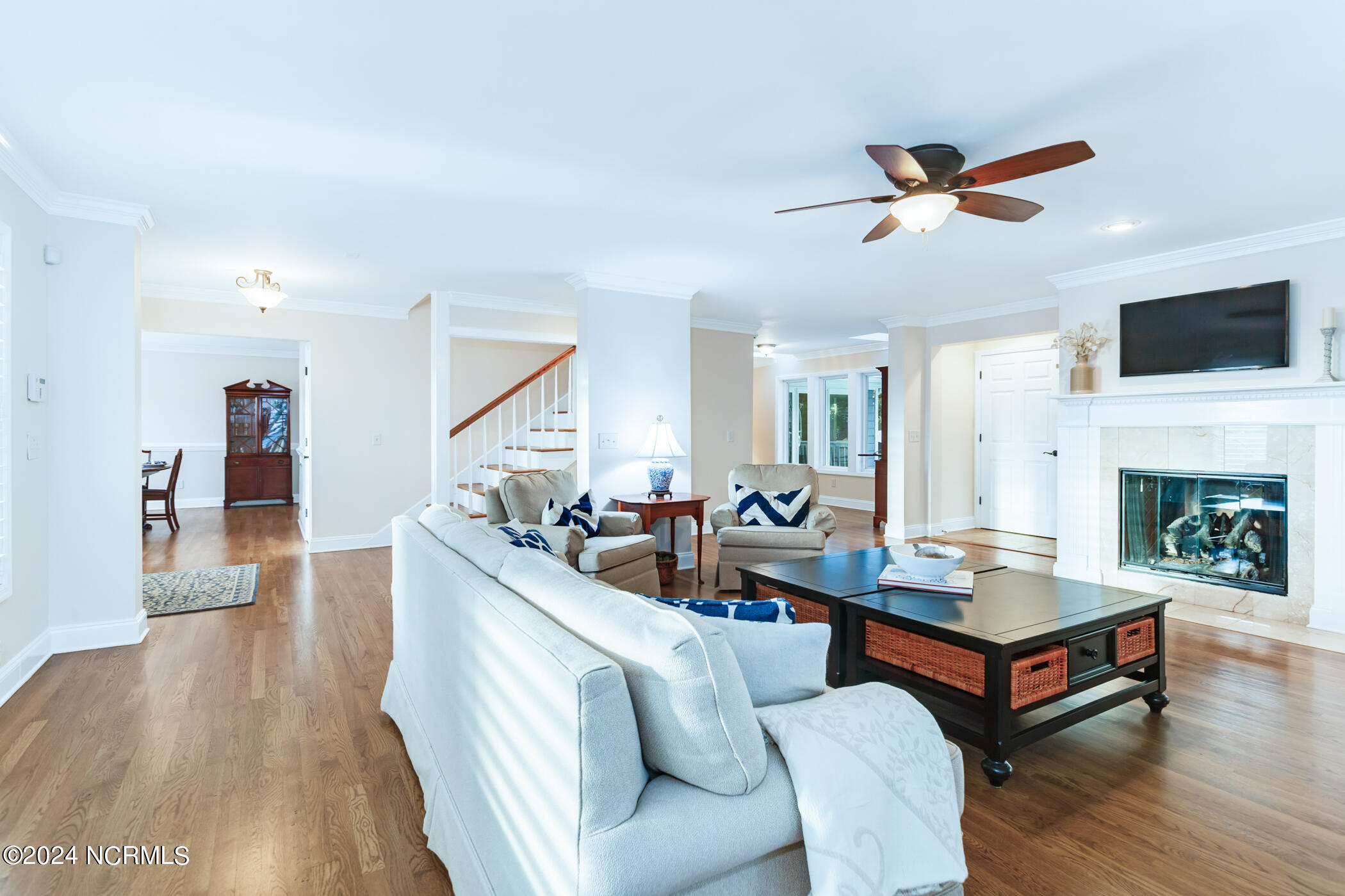 Welcome to your waterfront sanctuary with a private boat slip situated within the coveted community of East Bank Landing. This meticulously updated home effortlessly blends timeless elegance with modern convenience. Hardwood floors grace the main living areas, while fresh paint accents the living and dining rooms, creating an ambiance of warmth and sophistication.